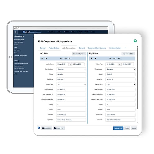 Cloud Appointments is rich with functionality. With optional features tailored to audiology clinics, it streamlines daily operations, from bookings and appointment management, to stock management, customer records, invoicing and more.