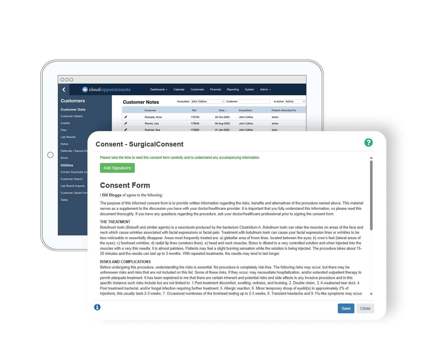 Electronic consent forms allow you to conveniently inform the patient and record their consent quickly and accurately.